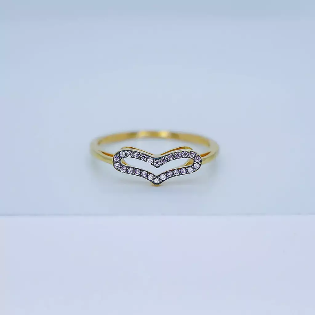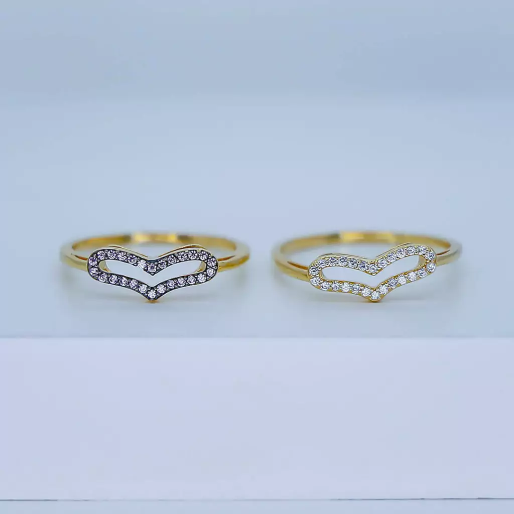 Descubra o Lindo Anel Coração Vazado que traz um toque de elegância ao seu visual. Este modelo encantador apresenta um design achatado e cravejado com zircônia, disponível nas opções de cristal e zircônia lilás.