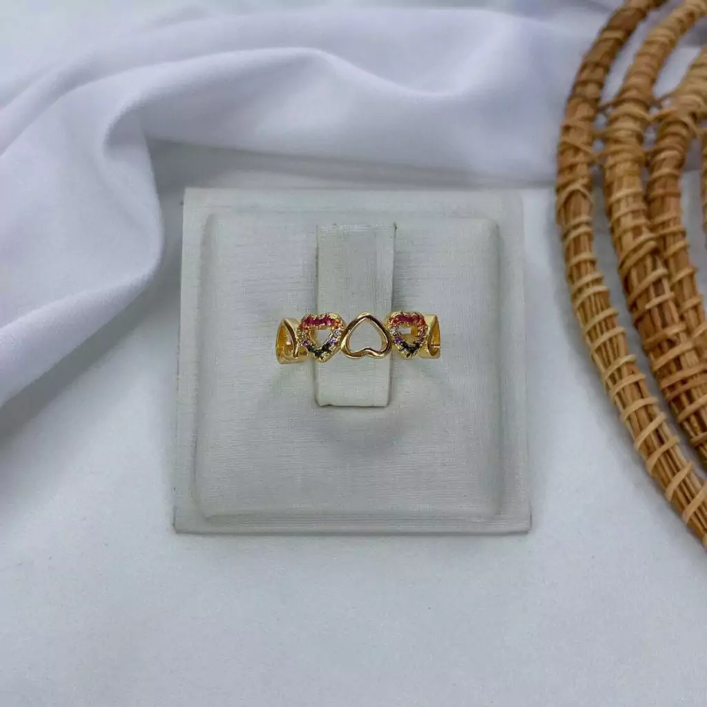 O Anel Corações Coloridos - 30840 é um acessório delicado e sofisticado que faz jus ao seu nome. Com detalhes em pedrarias coloridas, este anel em formato de coração, banhado com 10 milésimos de ouro 18k, traz um toque de elegância e glamour para qualquer look. Além disso, possui garantia de 6 meses para garantir a qualidade e durabilidade deste belo acessório.