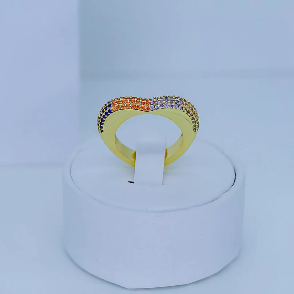 Surpreenda-se com o brilho das zircônias coloridas que adornam este anel, tornando-o uma peça única e irresistível. Ideal para presentear alguém especial ou para complementar sua própria coleção de acessórios.