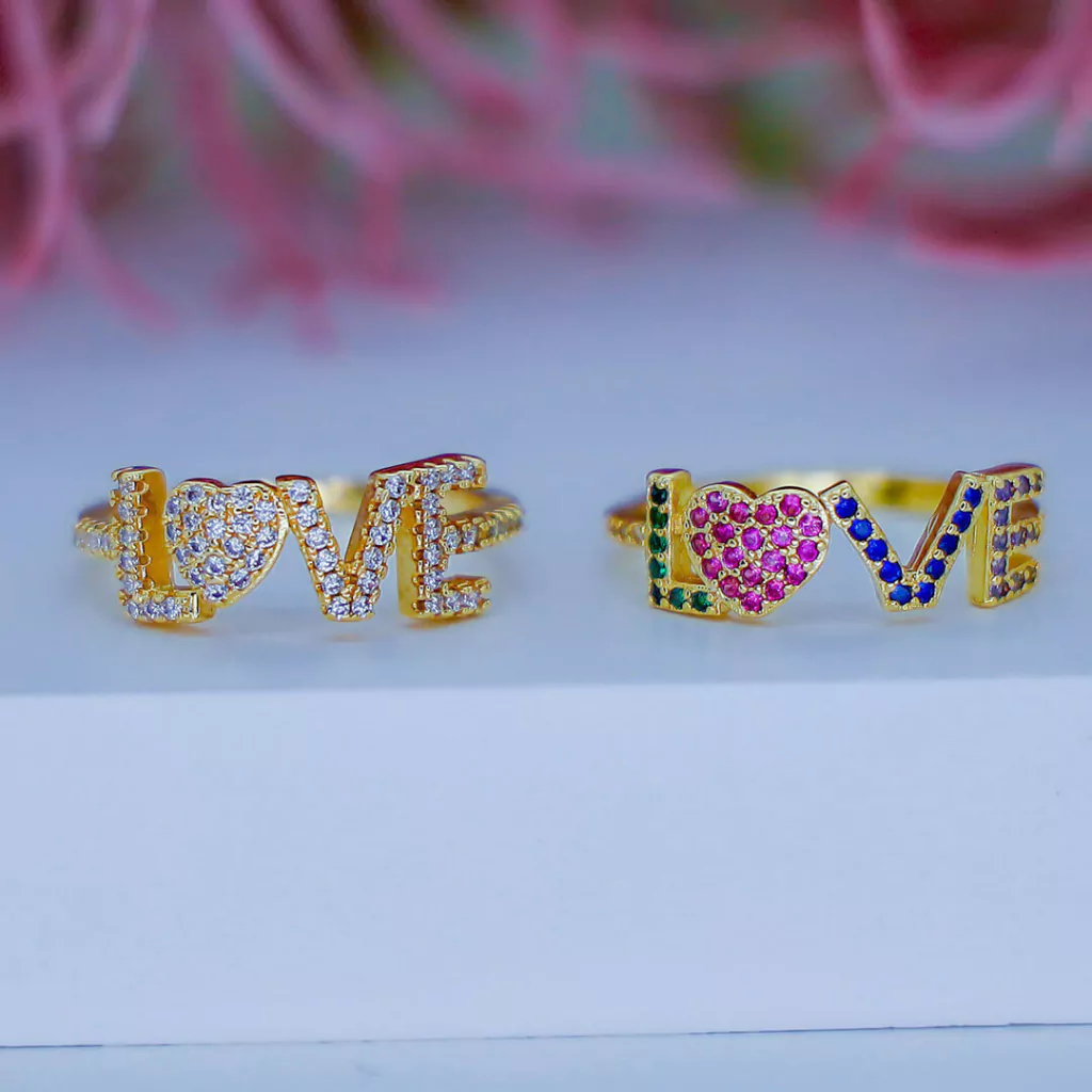 Descubra o Anel Love, uma peça única que combina elegância e estilo. Este anel cravejado em zircônia cristal e colors é perfeito para quem busca um acessório que destaque a sua personalidade.