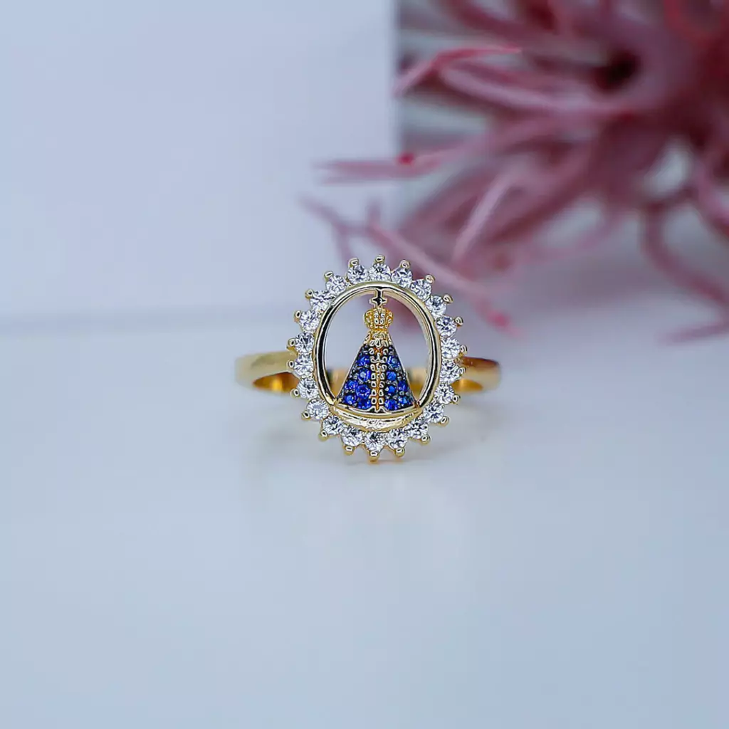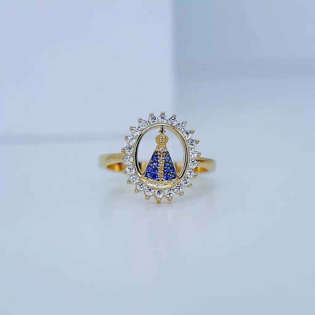 Descubra a belezura e a fé com o nosso deslumbrante Anel Nossa Senhora Aparecida. Este anel cravejado com zircônias é mais do que uma joia; é uma verdadeira expressão de devoção e estilo.