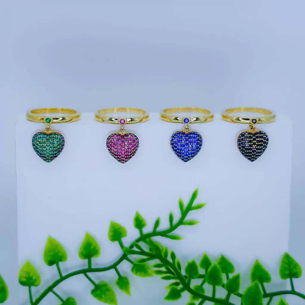 Um símbolo de amor e sofisticação, o Anel Pingente Coração é a escolha perfeita para quem deseja brilhar em qualquer ocasião. Com um design encantador, este anel é cravejado com zircônias em esmeralda, rubi, safira e ônix, trazendo um colorido vibrante que destaca a sua beleza.