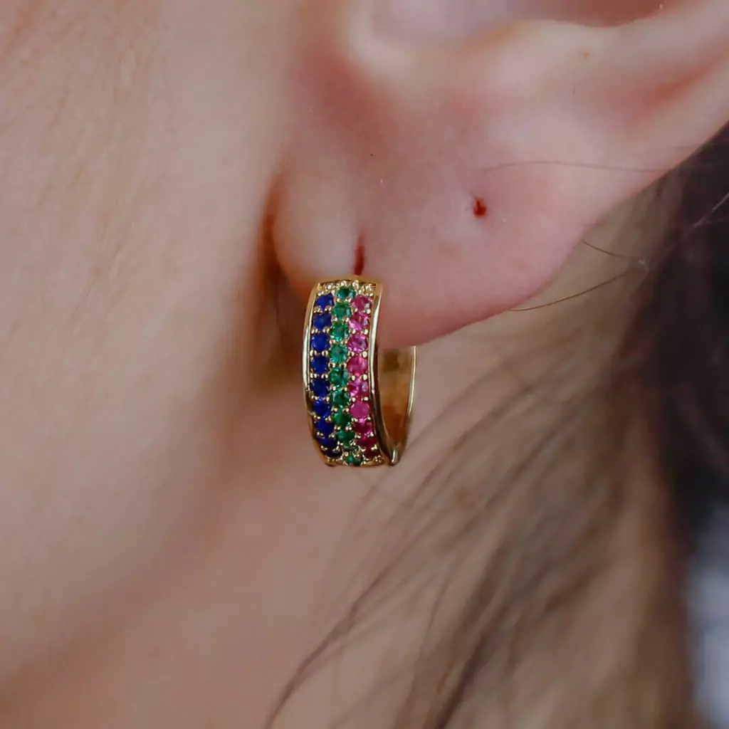 Não perca a chance de brilhar ainda mais! Garanta já a sua Argola Cravejada Zircônia Colors e transforme seu visual com elegância.