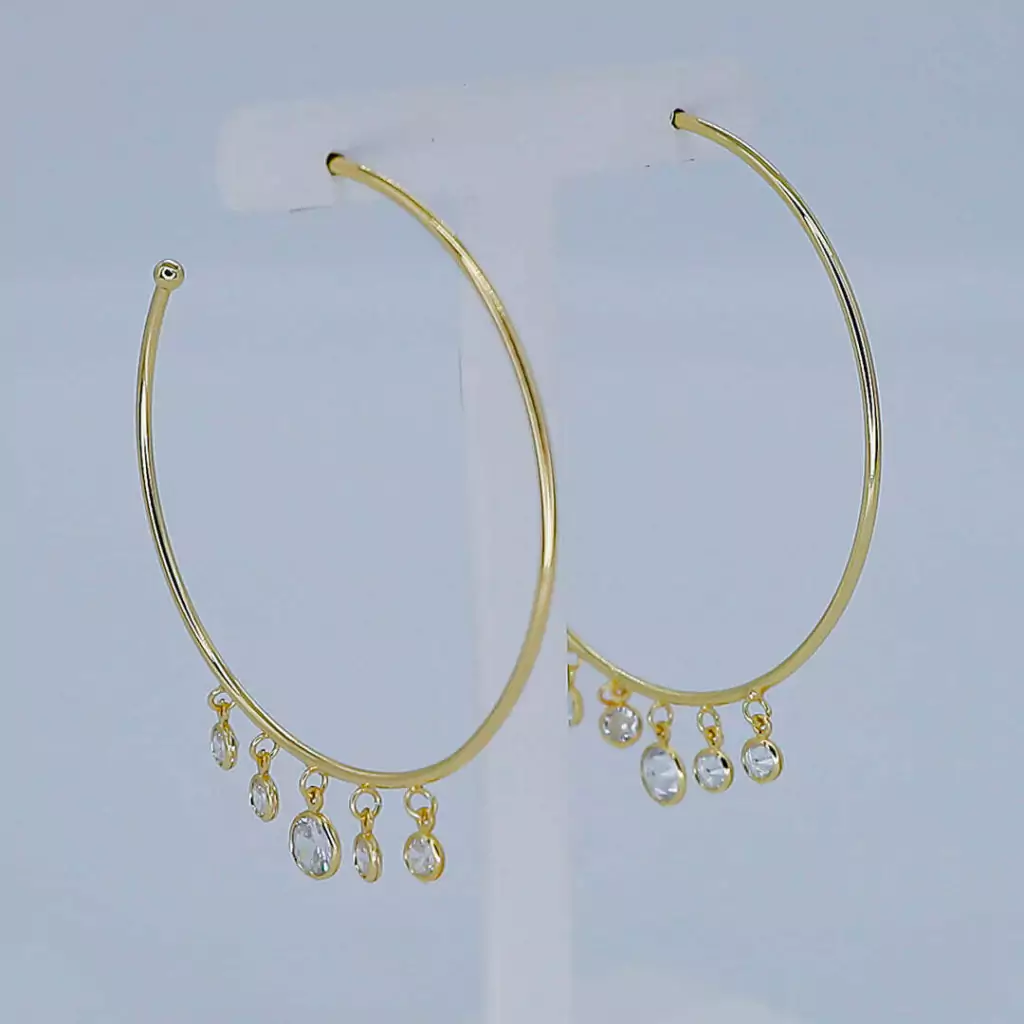 Banhada a ouro 18k, a argola oferece um toque de luxo e resistência, tornando-se uma peça indispensável na sua coleção de acessórios. Os delicados pingentes em zircônia cristal refletem a luz de forma encantadora, garantindo que você se destaque em todas as ocasiões.