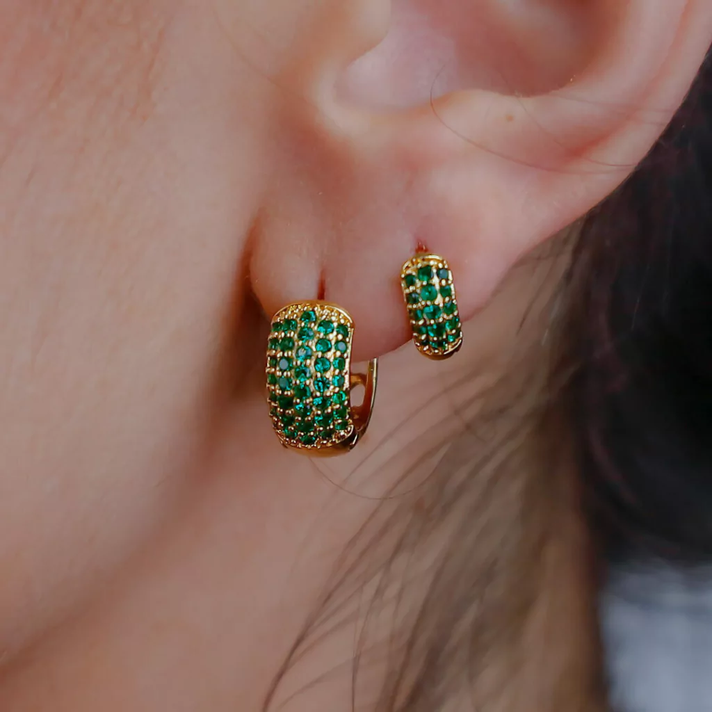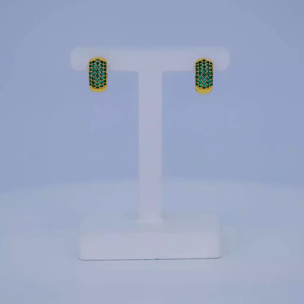 Lindas argolas cravejadas na zirconia esmeralda e temos os três tamanhos o P, M e G.