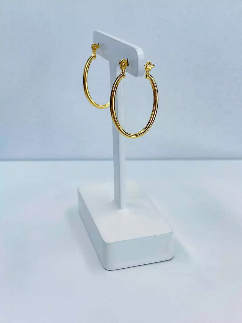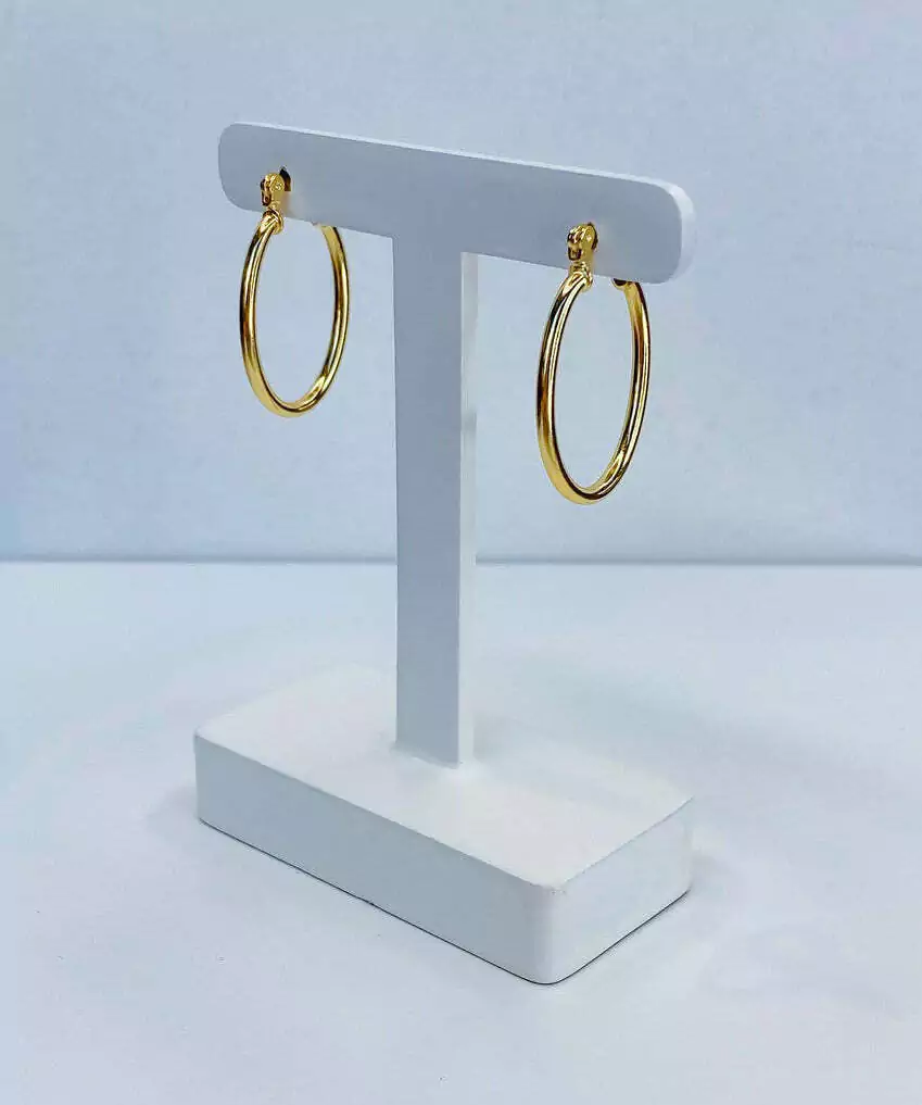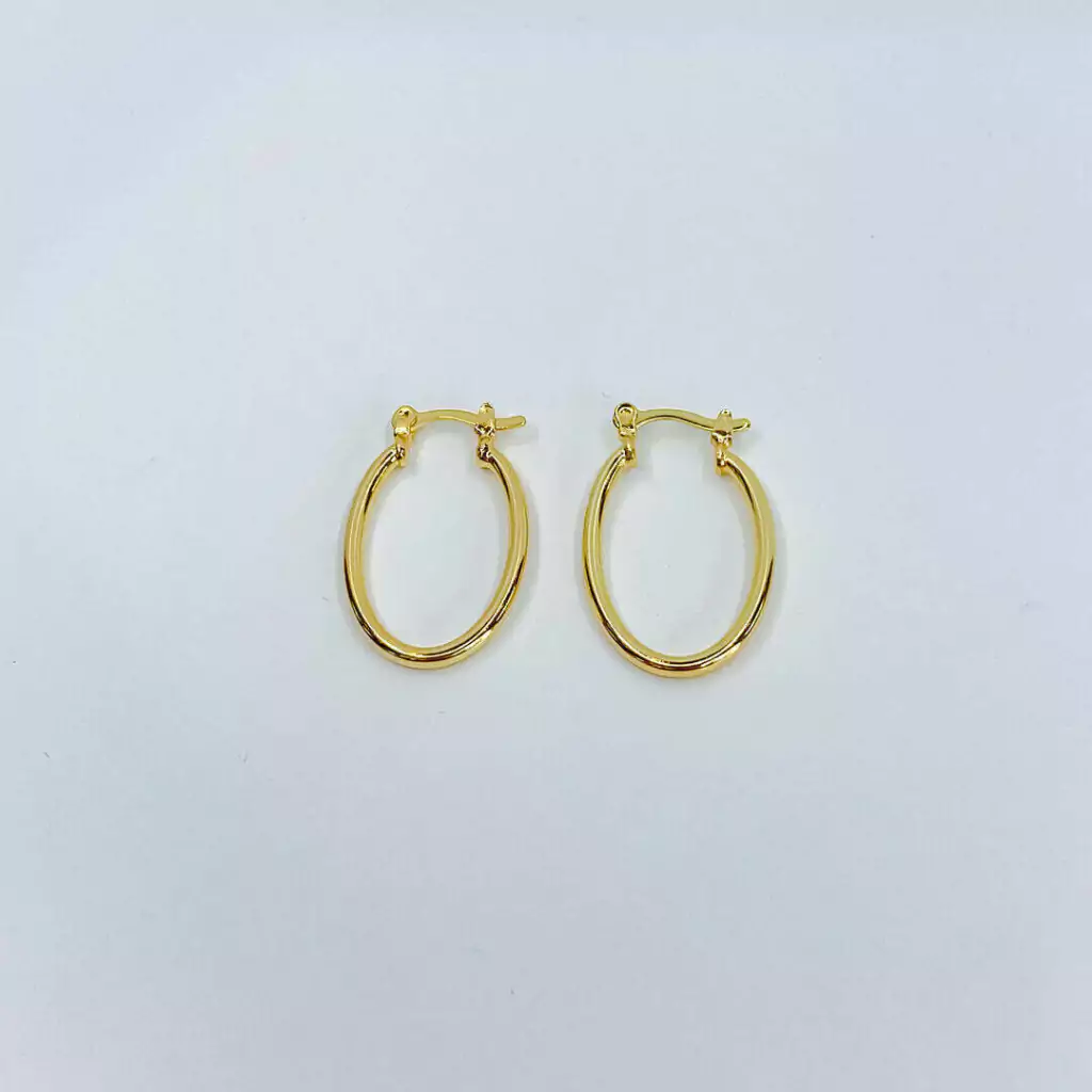 Argola oval pequena com fio redondo e fecho italiano. Banhado a ouro 18k com 10 milésimos de ouro, com garantia de 3 meses.
