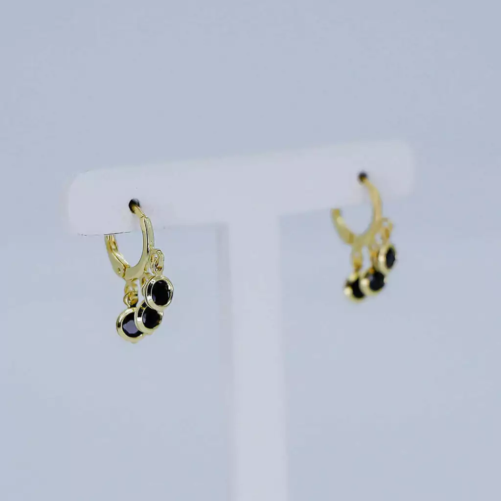 Argola com pingentes em zircônia negra , banhado a ouro 18k, com garantia de 3 meses.