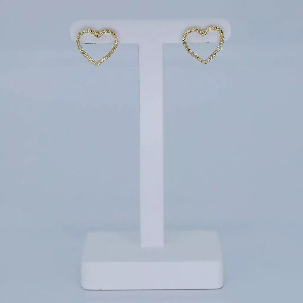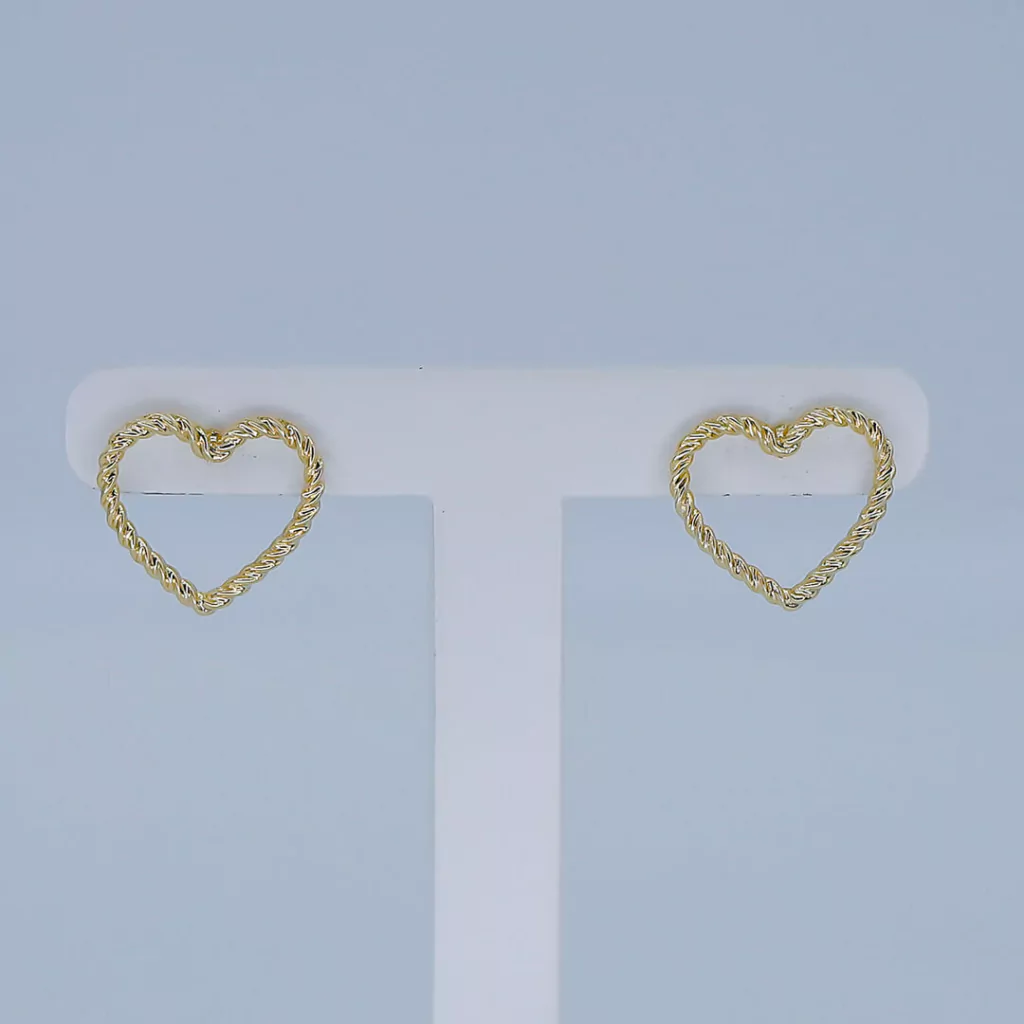 Brinco coração vazado com borda trabalhada torcida , banhado a ouro 18k. Sem garantia devido ao valor.