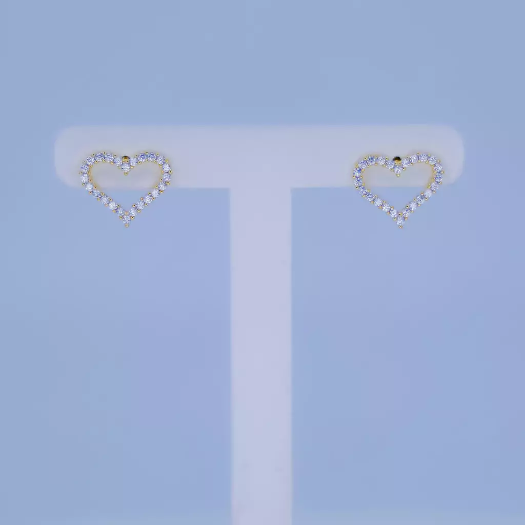 Brinco Coração Cravejado com Zircônia Banhado a Ouro 18k - 18714