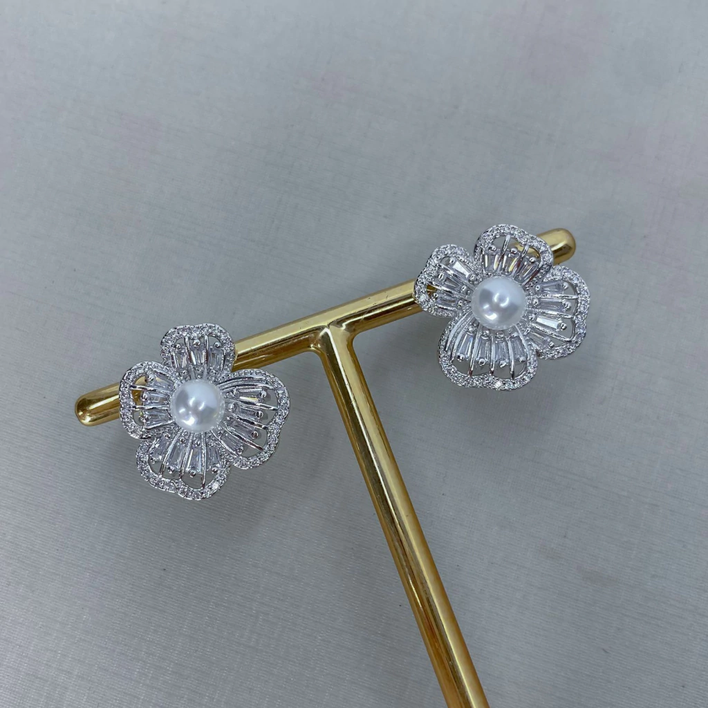 Brinco Flor Pérola – a perfeita união entre delicadeza e sofisticação. Esta semi joia apresenta um design exclusivo em formato de flor, adornado com madrepérola e uma pérola central que irradia elegância.