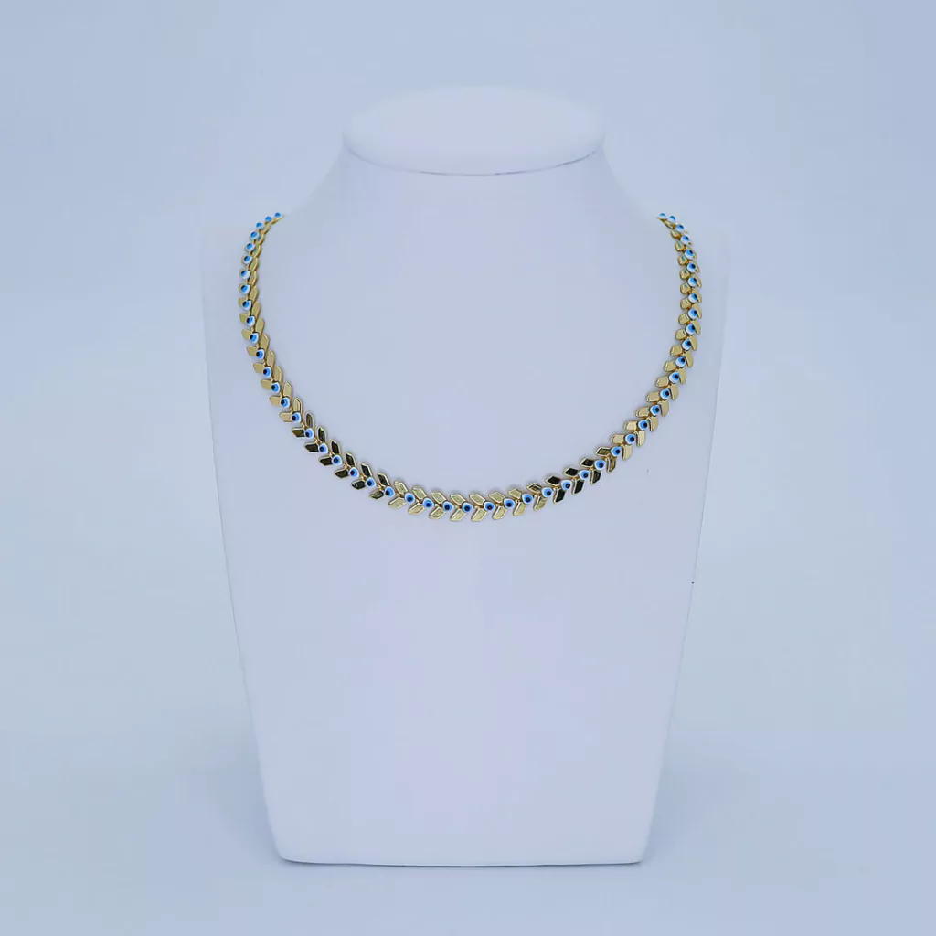 Banhada a ouro 18k com 10 milésimos, esta choker é sinônimo de qualidade e durabilidade. A folheação é garantida por 1 ano, permitindo que você brilhe com confiança em qualquer ocasião. O olho grego, símbolo de proteção, adiciona um toque especial, tornando esta peça única e cheia de significado.