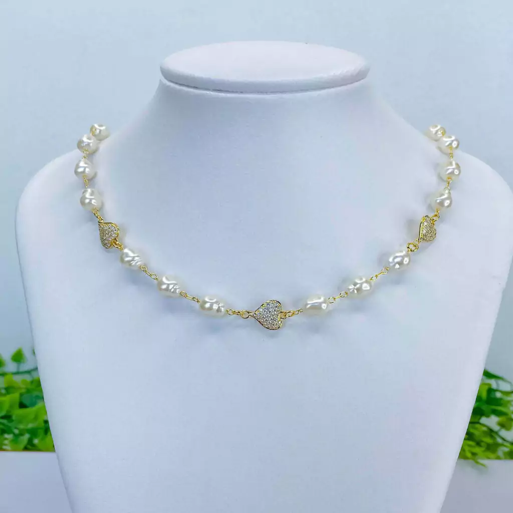 Invista em estilo e encanto com a Choker Pérola com Detalhes em Coração Cravejado!