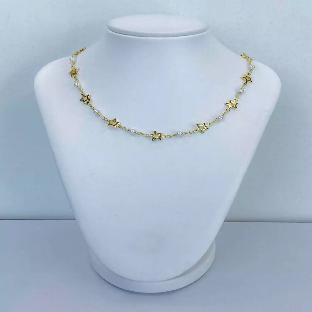 Descubra a delicadeza do nosso Choker Pérola Estrela, uma peça que irradia charme e elegância. Com detalhes em estrela, este choker é banhado a ouro 18k com 10 milésimos, garantindo um brilho irresistível e duradouro.