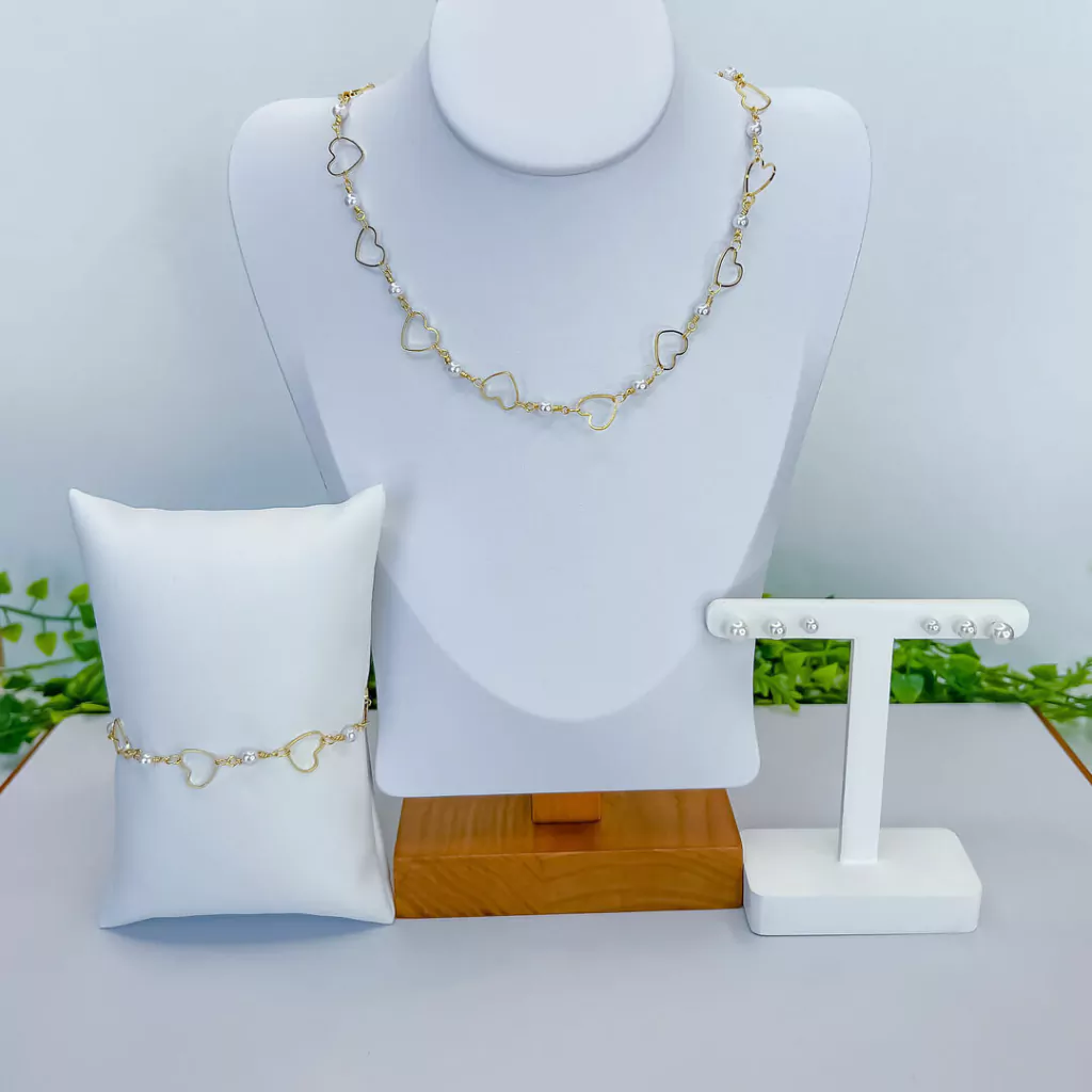 Encante-se com a linda composição Coração Pérola, que traz um toque de charme e delicadeza ao seu visual. Composta por um brinco trio em pérola, uma pulseira de 18 cm e uma choker de 35 cm com alongador de 10 cm, esta coleção é perfeita para quem deseja brilhar em qualquer ocasião.