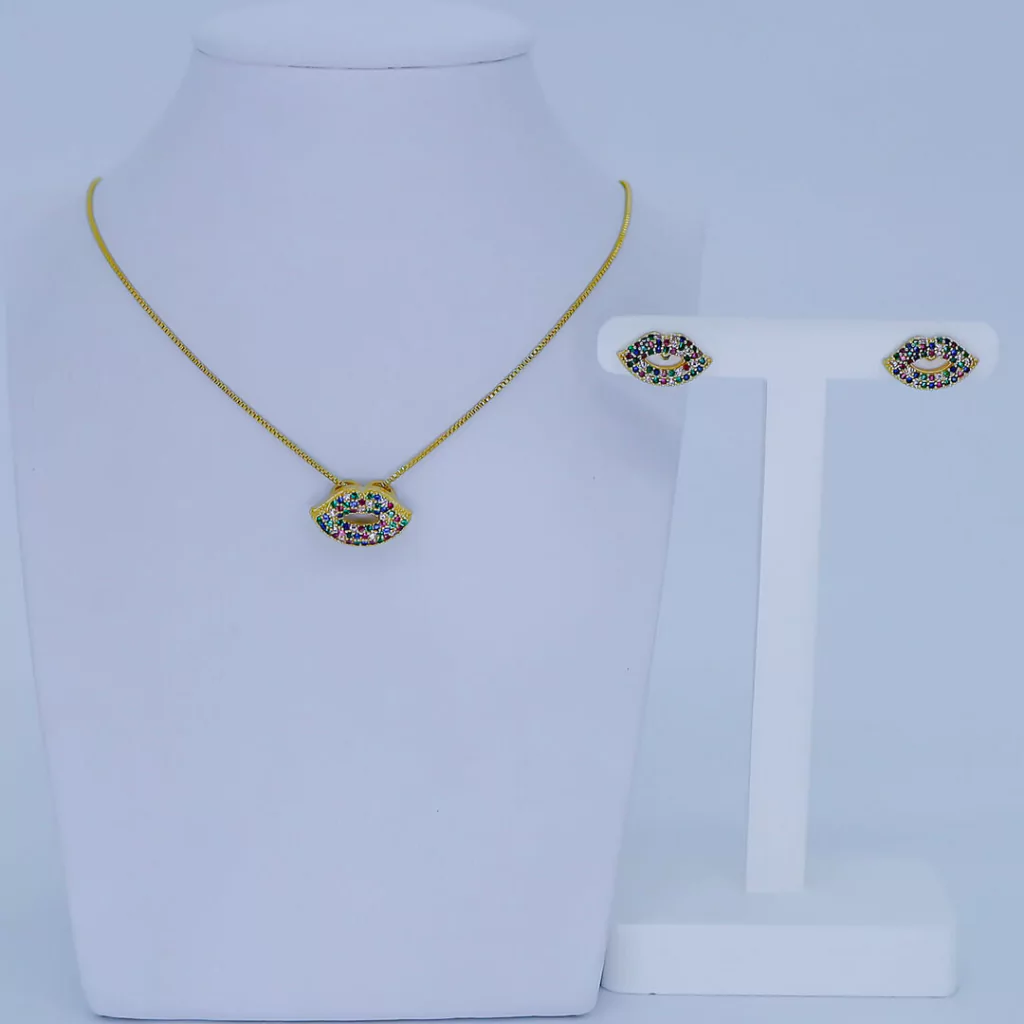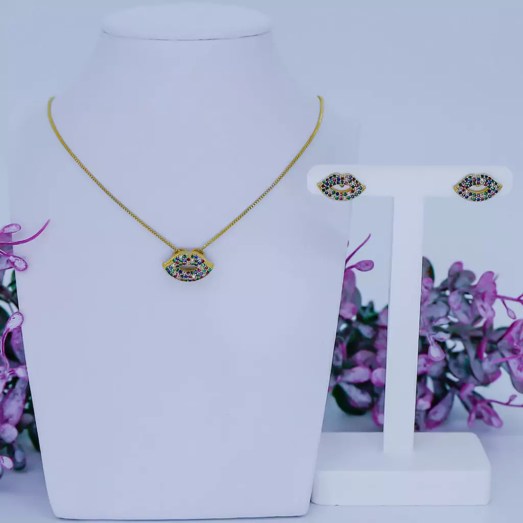 Conjunto boca cravejado com micro zircônia corrente tamanho 45cm, peça banhada a ouro 18k com 10 milésimos e com garantia de 3 meses.