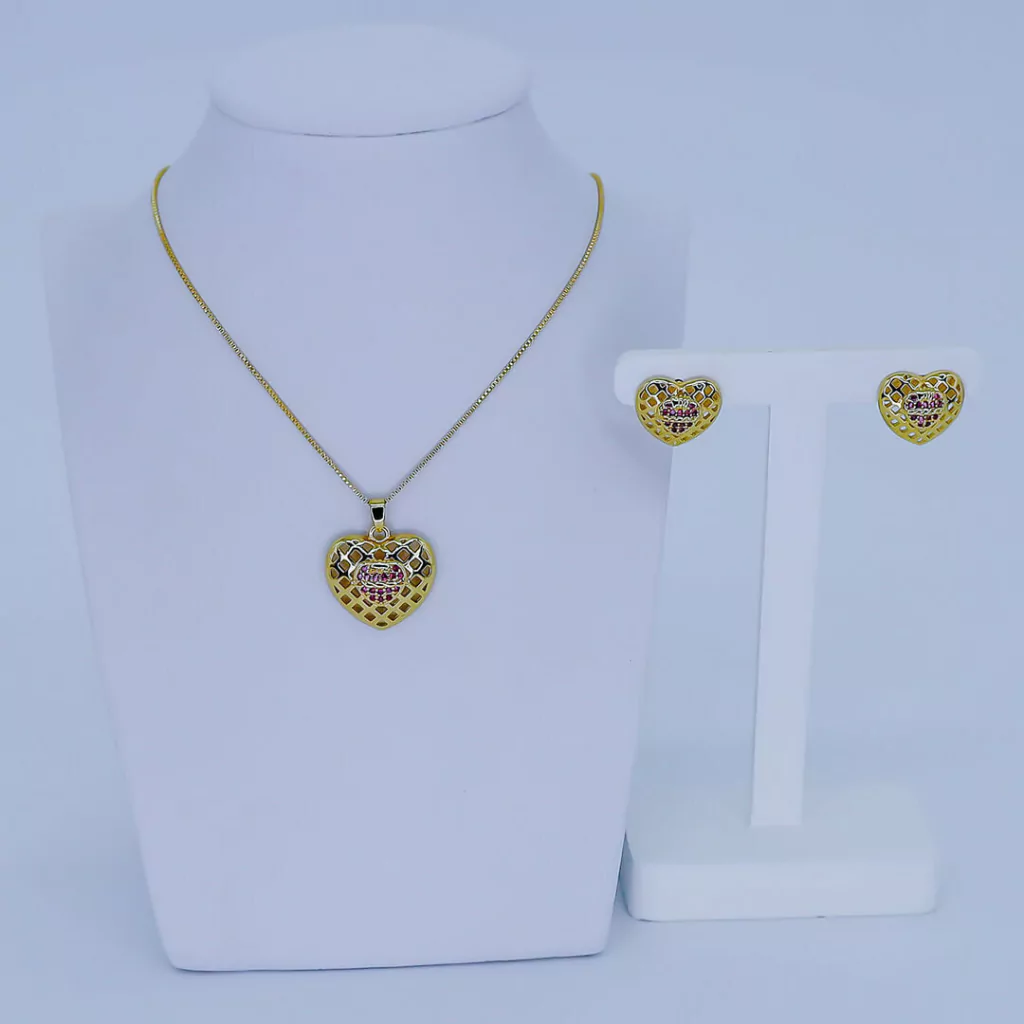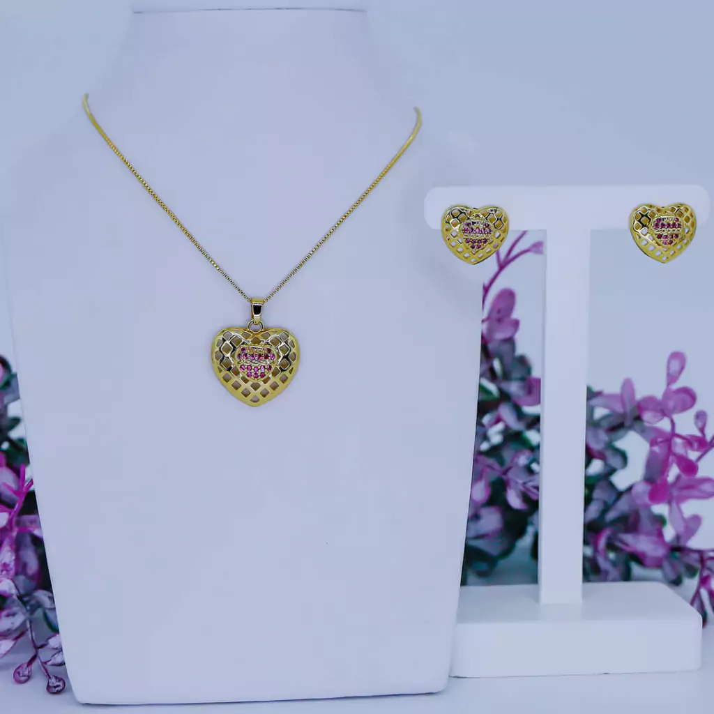 Encante-se com o deslumbrante Conjunto Sagrado Coração de Jesus, uma peça cravejada com microzircônia que irradia brilho e sofisticação. Este conjunto é a escolha perfeita para quem deseja adicionar um toque de luxo ao seu visual.