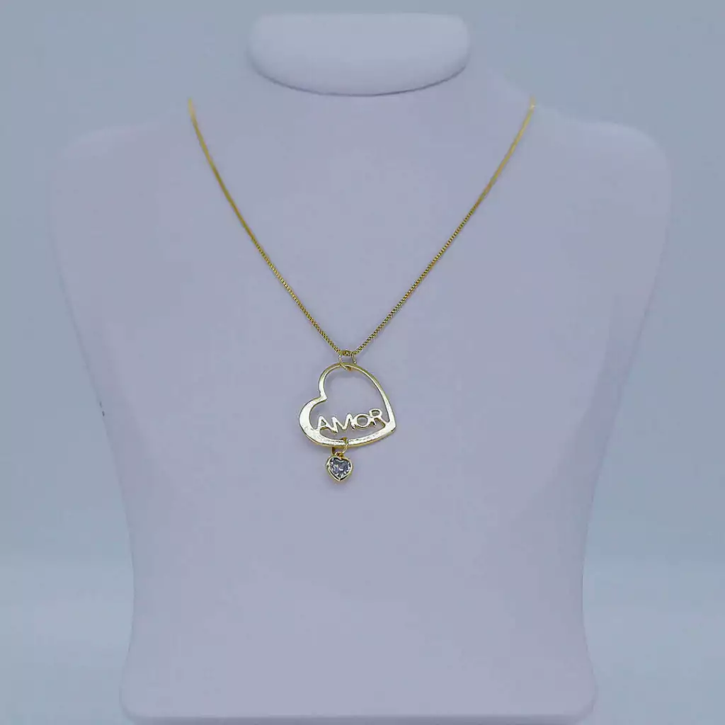 Deixe seu coração falar mais alto com a Gargantilha Amor. Esta peça deslumbrante combina um elegante pingente coração com o nome "amor", simbolizando a essência dos sentimentos mais profundos.