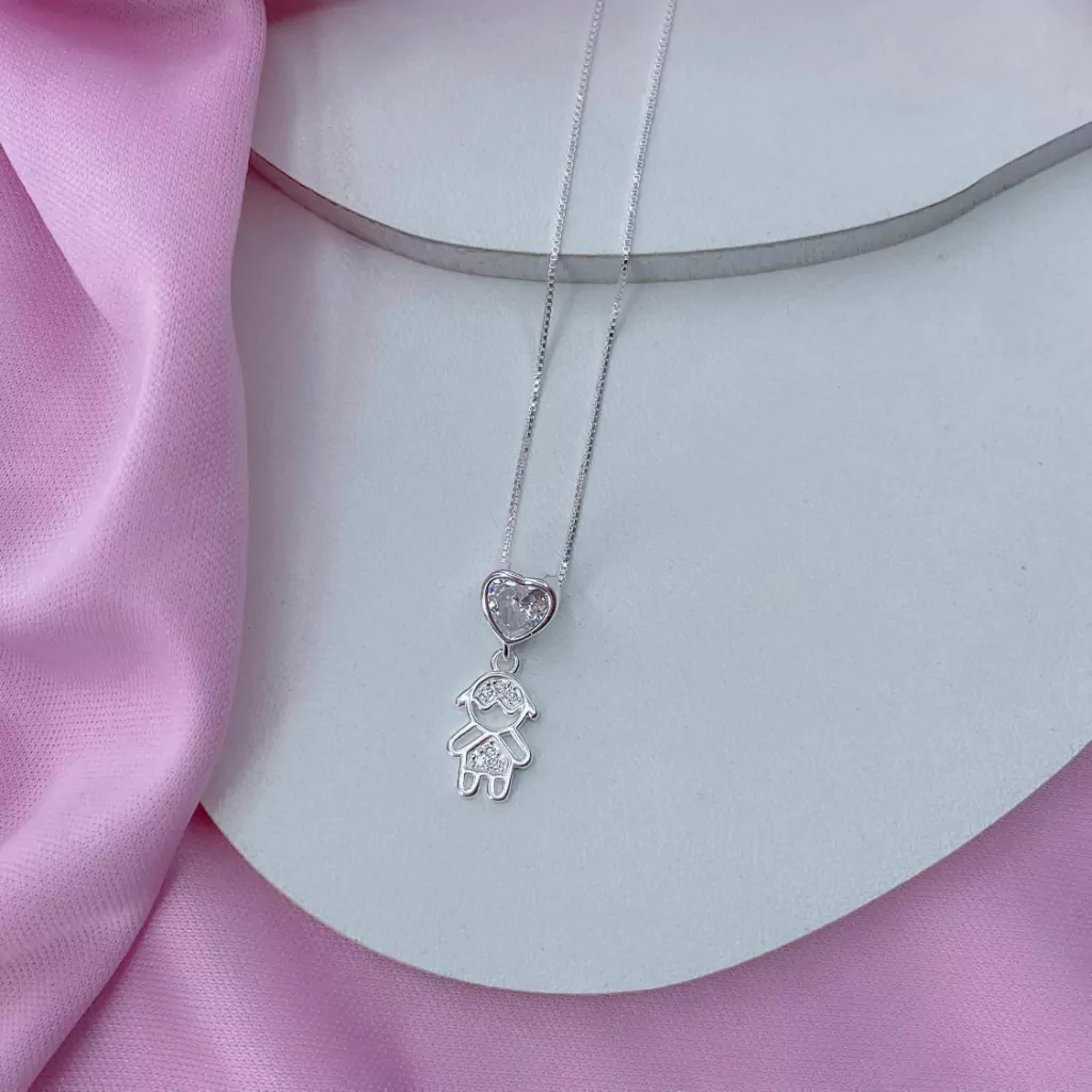 Gargantilha Filho - 32242: Uma joia que simboliza o amor e a conexão entre mãe e filha. Esta gargantilha delicada em prata possui um encantador pingente em forma de coração 45cm, perfeita para expressar seus sentimentos de maneira única.