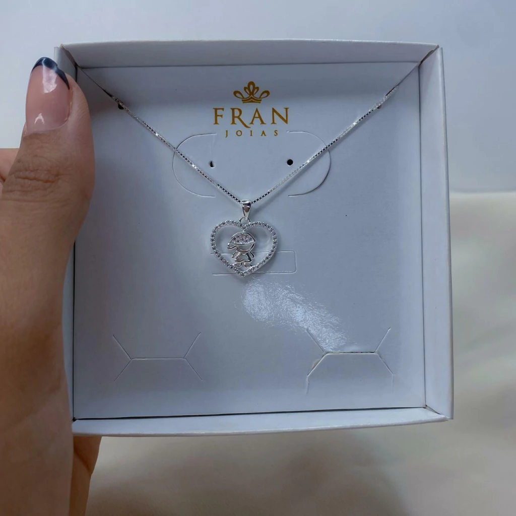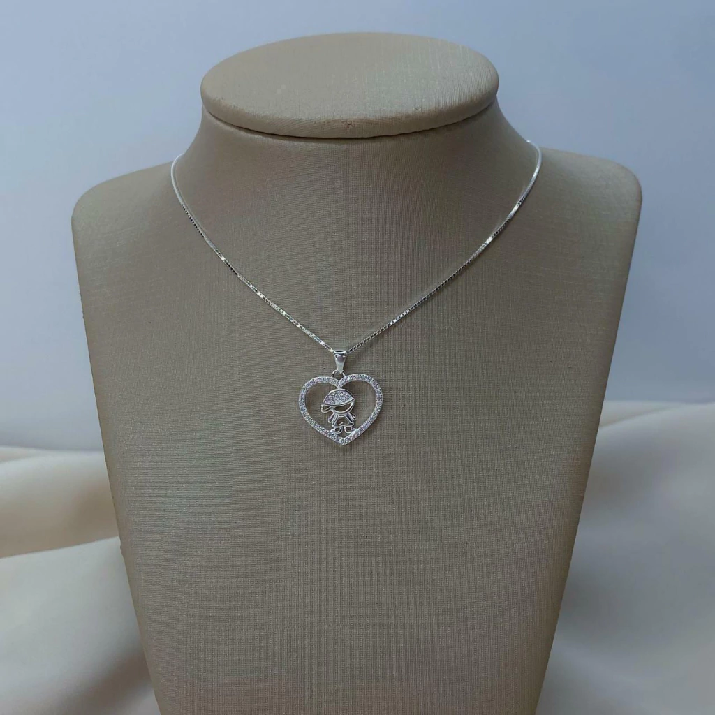 Gargantilha Filho (Prata 925) - 35265 Encante-se com a gargantilha de coração com filho dentro, uma peça que simboliza amor e proteção. Feita em prata 925, esta joia une delicadeza e sofisticação, perfeita para quem valoriza um acessório com significado especial. Ideal para usar em qualquer ocasião, adicionando um toque elegante e afetivo ao seu visual. Invista em qualidade e emoção com esta peça única.