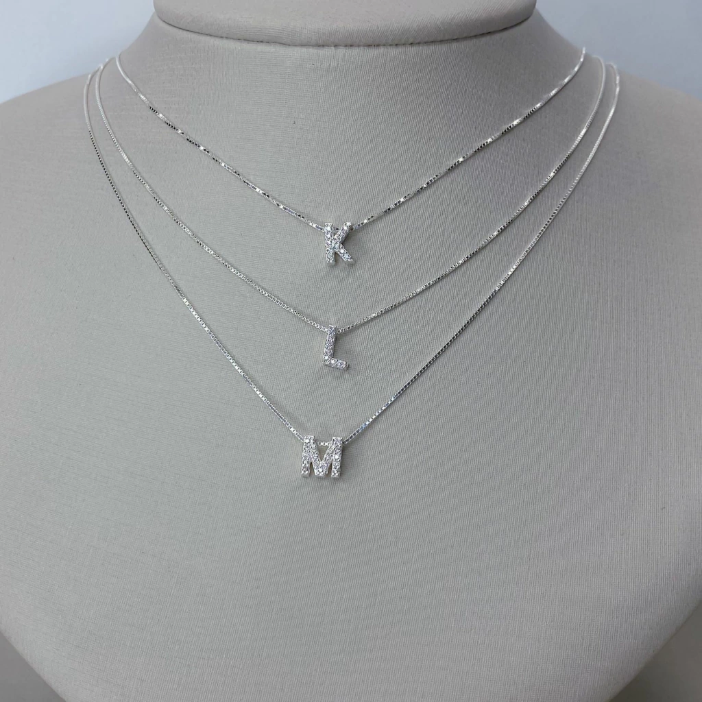 Gargantilha com Iniciais - Prata 925 e Pingente em Zircônia