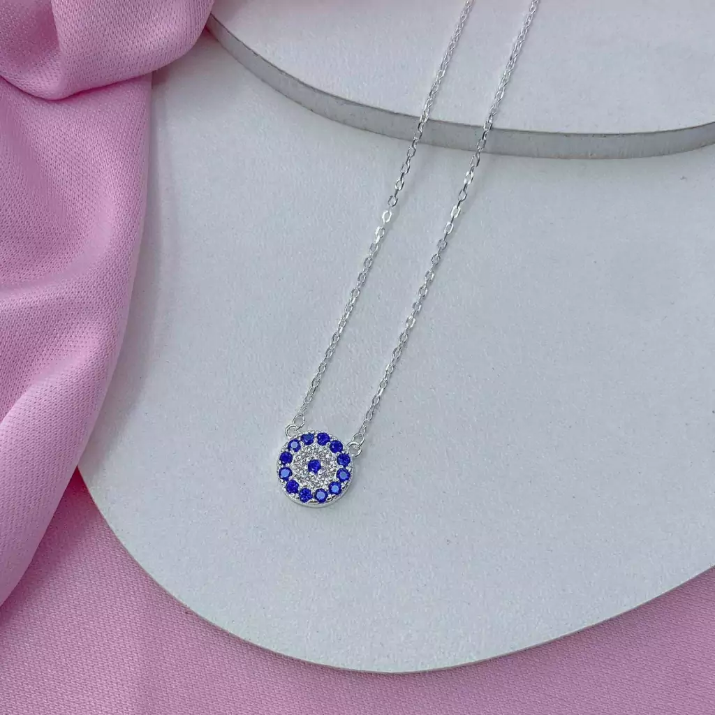 Esta elegante gargantilha apresenta o tradicional amuleto Olho Grego em prata 925, com um comprimento de 45cm. Proteja-se do mau olhado com este acessório de qualidade e estilo.