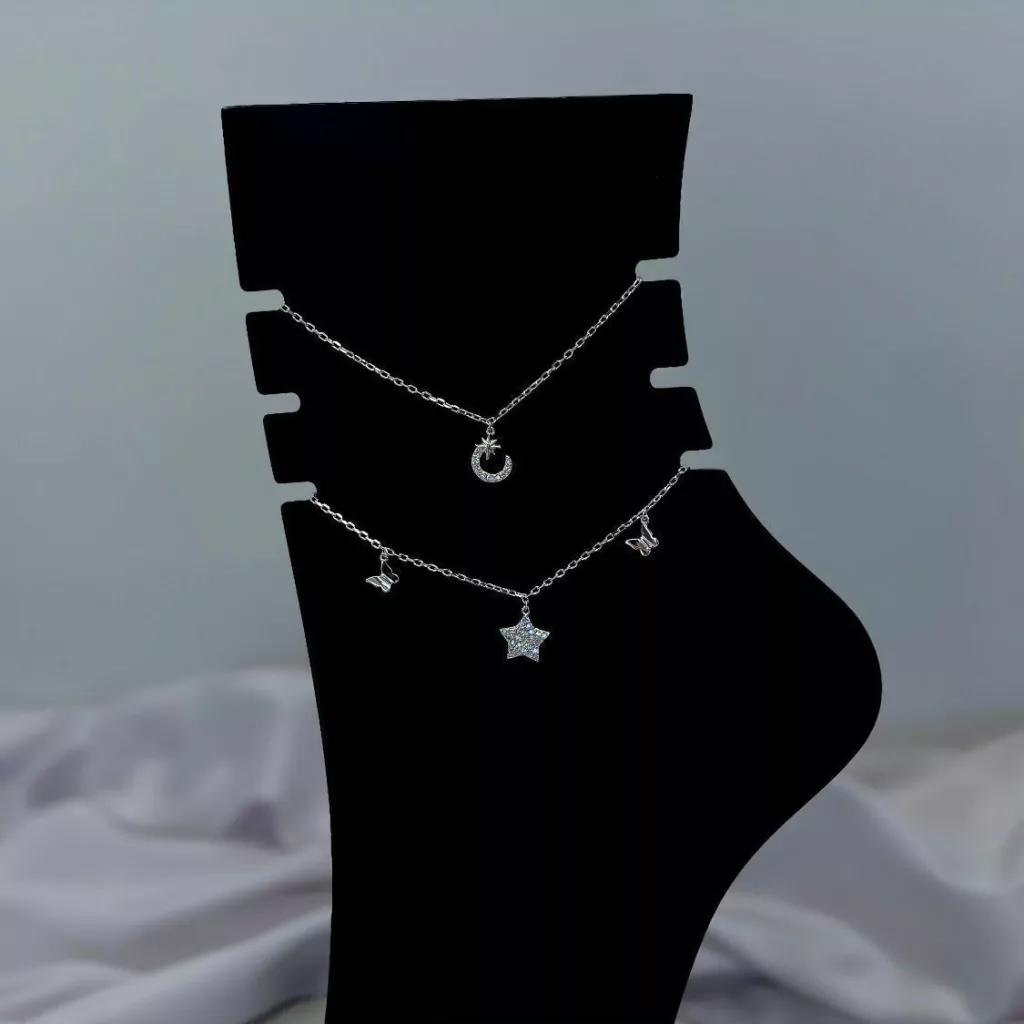 Transforme seu visual com o nosso Kit Tornozeleiras em Prata 925. Este conjunto elegante e delicado é composto por duas peças que trazem um toque de charme e sofisticação a qualquer look.